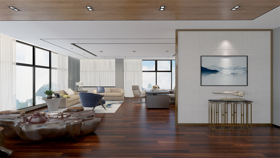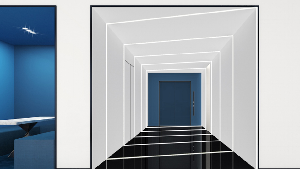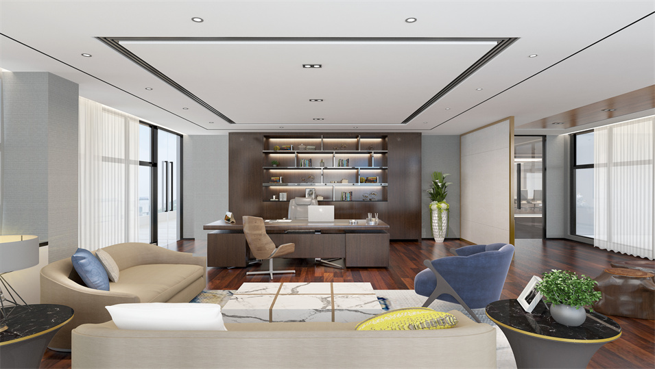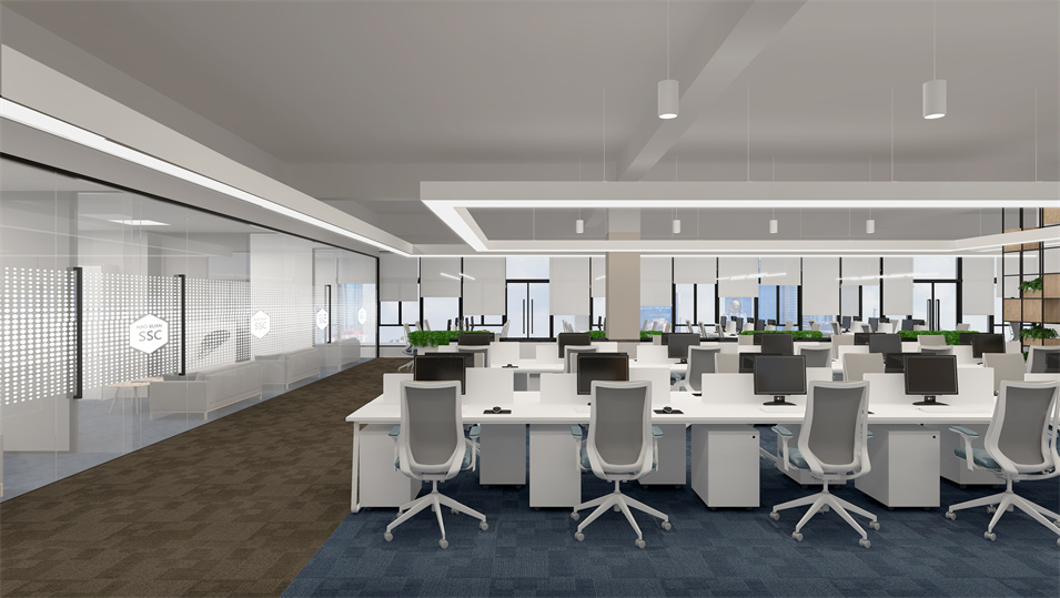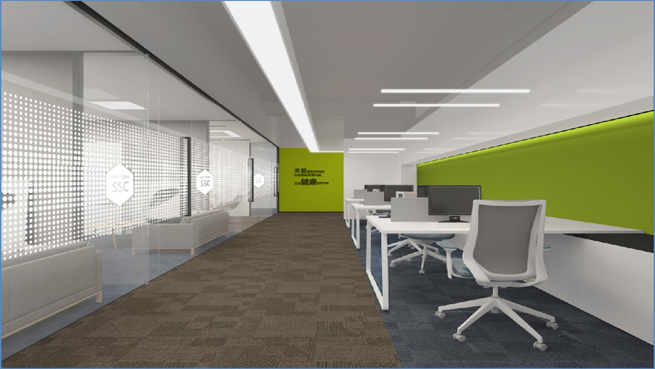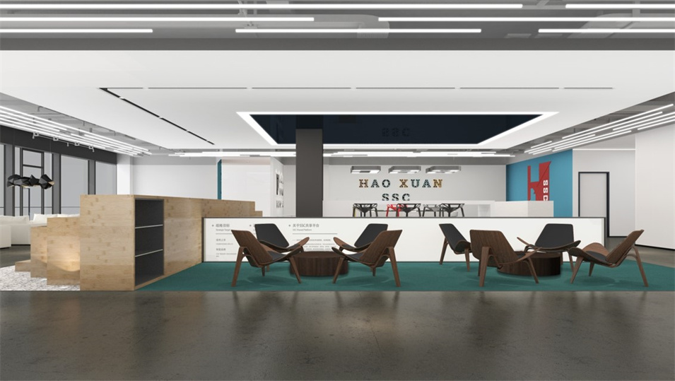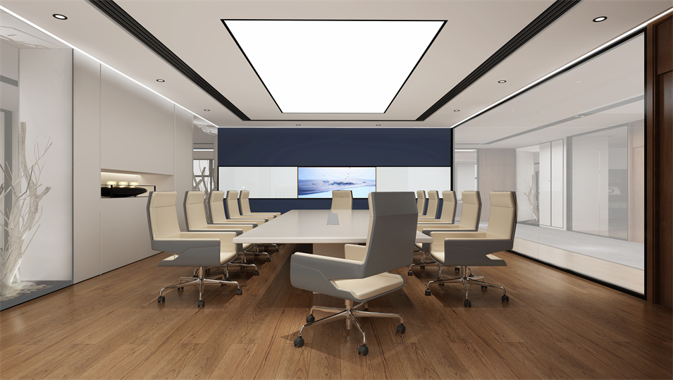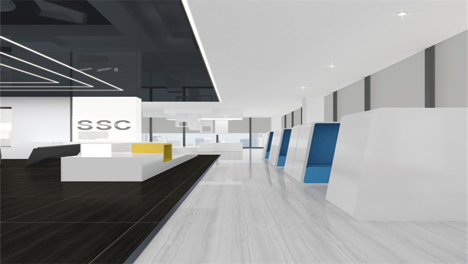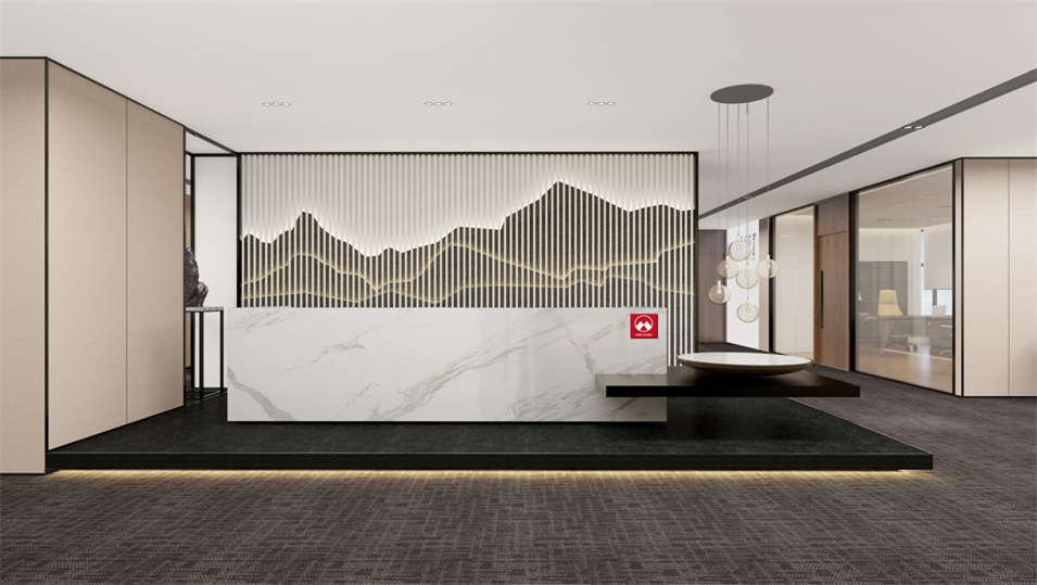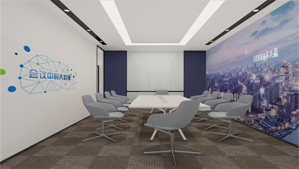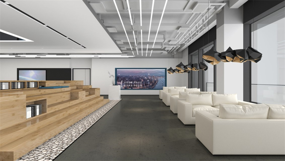 設(shè)計介紹:主要展示前臺、洽談區(qū)、走廊、貴賓區(qū)、會議室、辦公區(qū)等各個區(qū)域?qū)嵨飯D,設(shè)計師們采用現(xiàn)代簡約風格辦公室設(shè)計,主要以白色為主,藍色更符合智能化科技的公司形象,通過幾何圖形與條紋裝飾打造科技智能的辦公空間。
